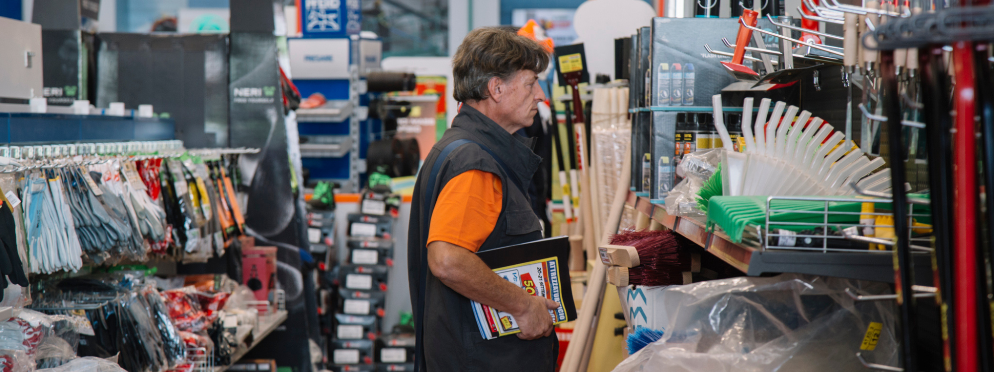 Nato come piccolo laboratorio di ponteggi, oggi è diventato un grande showroom e magazzino con migliaia di prodotti pronti all’uso: utensili elettrici e manuali, DPI, abbigliamento da lavoro, transenne, barriere, soluzioni per edilizia e industria.