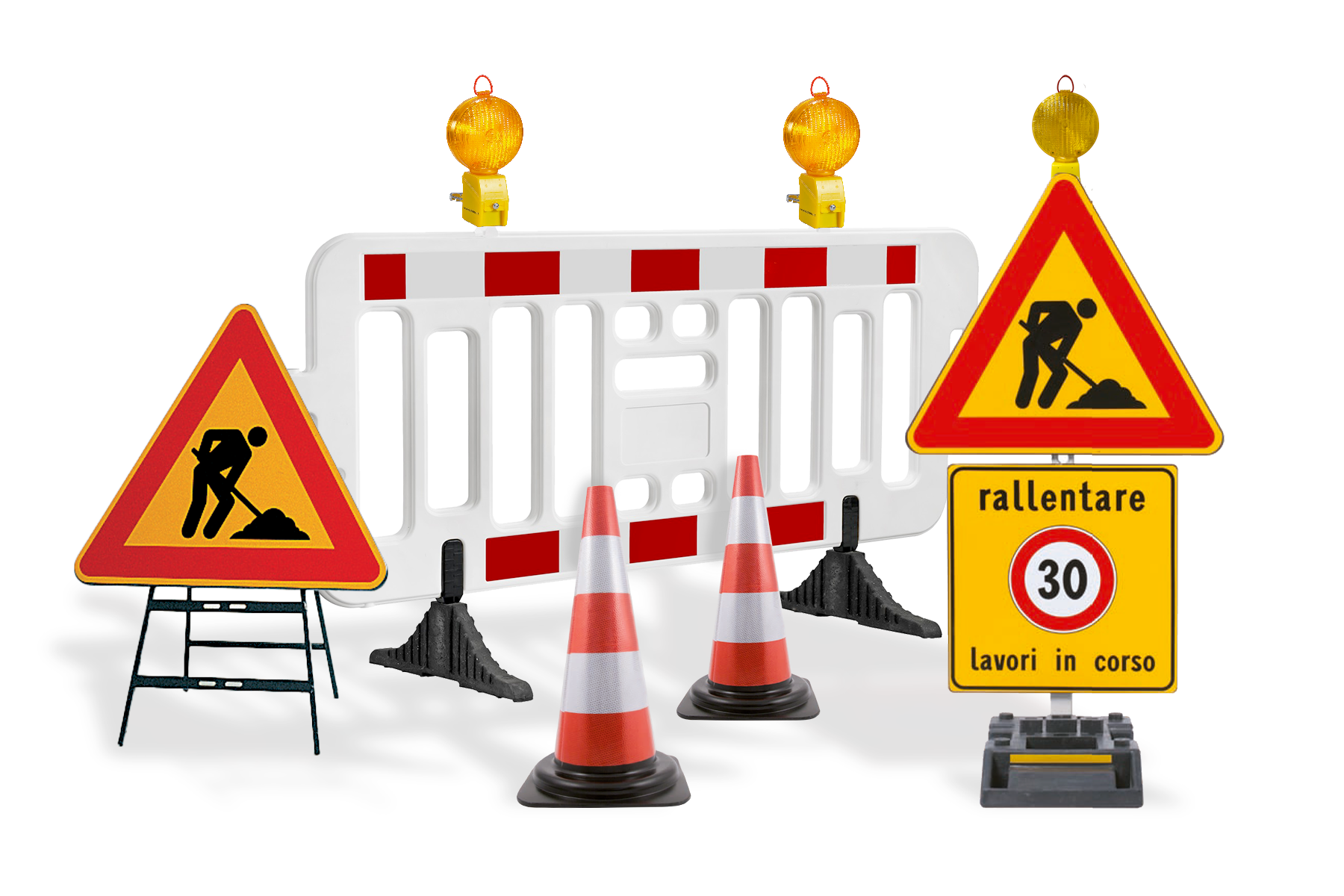 - Cartelli da cantiere (in plastica o ferro), piantane, cavalletti.